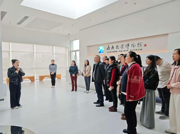 下午,全体党员走进华艺美学生活空间·南通扎染博物馆,沉浸式体验非遗文化的独特魅力。从秦汉“绞缬”技艺的源起,到隋唐“五彩绞缬”的鼎盛,再到当代扎染工艺的复兴与创新,大家细致了解了南通扎染的发展脉络与文化内涵。特别是在“出于蓝”大型扎染艺术空间,华艺集团“古为今用”推动扎染走向产业化、时尚化、科技化的实践,生动诠释了非遗技艺守正创新的时代逻辑。轻化工程系主任葛元宇老师表示:“此次参观是一次难得的专业‘充电’,我拍摄了大量图片与视频资料,将有机融入课程设计与专业教学,为学生带来更多美学震撼与文化自信。”