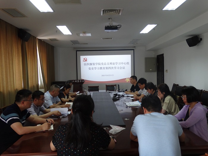6月21日上午,纺织服装学院党总支理论学习中心组召开党史学习教育第四次专题学习会议,党总支书记宋孝浜主持学习,学院中心组全体成员参加学习。
