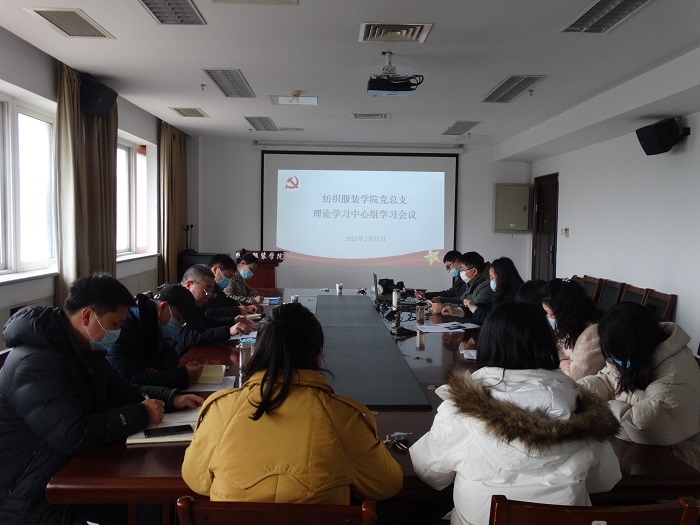 3月21日上午,纺织服装学院党总支理论学习中心组举行全国两会精神专题学习,党总支书记宋孝浜主持学习,学院中心组全体成员参加学习。校党委第二巡学旁听组组长刘雨龙、成员张慧旁听指导。