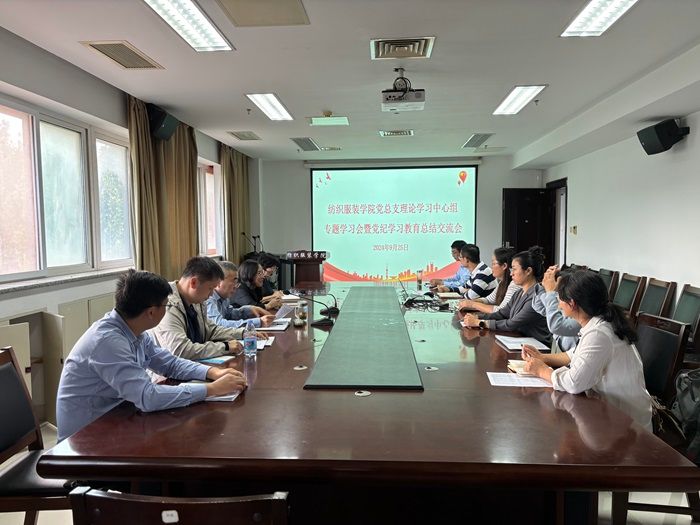 9月25日下午,纺织服装学院党总支理论学习中心组举行2024年9月份专题学习会暨党纪学习教育总结交流会,党总支书记宋孝浜主持学习,学院中心组全体成员参加学习。