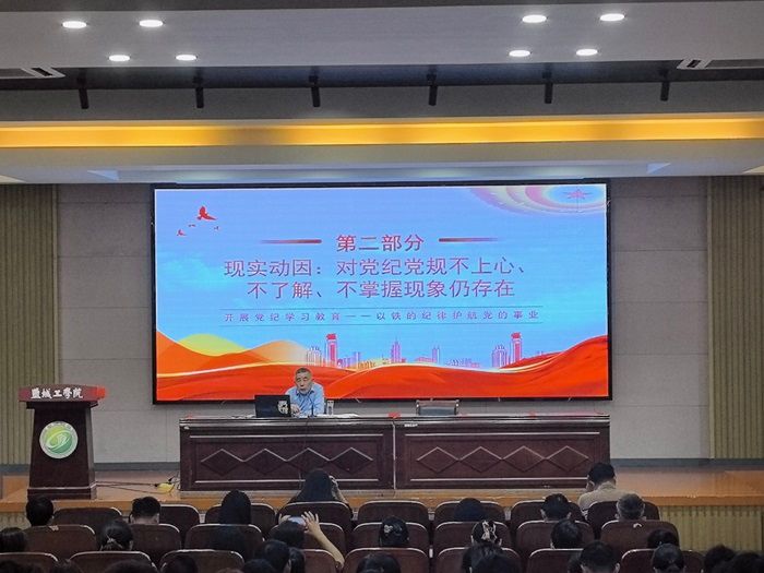 为进一步深化对加强党的纪律建设重要性的认识,准确把握党纪学习教育的目标要求,6月6日下午,纺织服装学院在南校区机械馆报告厅开展党纪学习教育专题党课,学院党总支书记宋孝浜作“开展党纪学习教育,以铁的纪律护航党的事业”专题辅导报告,学院全体教职工、学生党员、发展对象、部分积极分子参加会议。