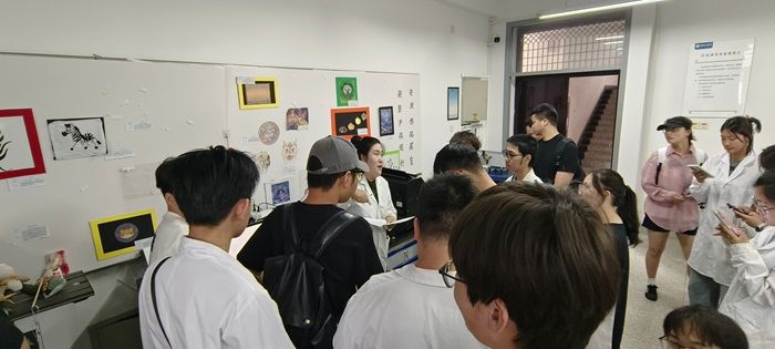 6 月 12 日,同学们走进江苏华艺集团,开启了一场艺术染整生产工艺的学习之旅。在厂区内,大家近距离观察与学习,深入了解扎染工艺的各个环节,从原材料的处理到最终产品的呈现,让理论知识与实践操作紧密结合。随后,同学们参观了南通扎染博物馆的绞缬花开展览。在博物馆内,一件件精美的扎染作品陈列眼前,色彩绚丽、纹理独特,展现了传统非遗文化的独特魅力。同学们亲自体验扎染技艺,感受非遗文化的深厚底蕴。