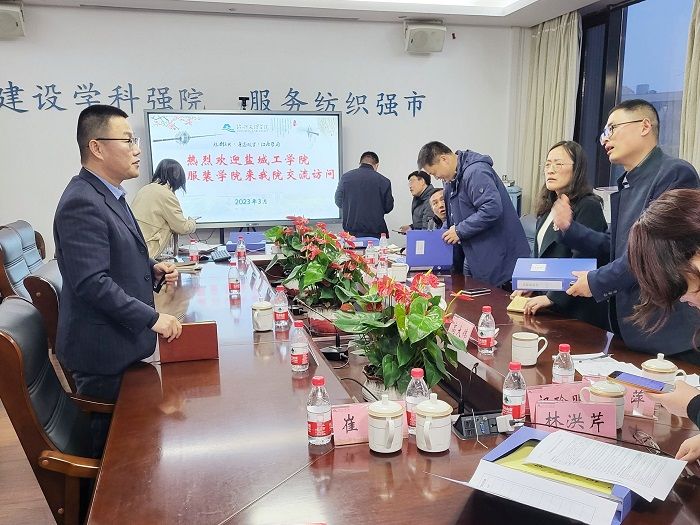 宋孝浜介绍了纺服学院办学历史、学科专业、师资队伍、考研就业等情况,王春霞介绍了专业认证工作准备情况及遇到的问题,绍兴文理学院纺织服装学院邹专勇院长、王东亮书记、钱红飞教授详细分享了专业认证工作的流程、自评报告的撰写、专家进校的注意事项。调研小组就专业认证相关工作的理念、持续改进机制、教学大纲的制定、课程目标达成度评价方法和评价过程的设计、工程实践类课程评价报告和支撑材料的准备等问题开展了深入交流。