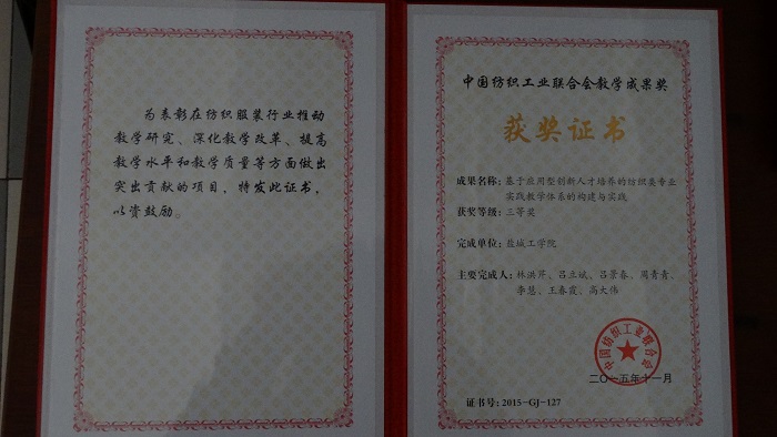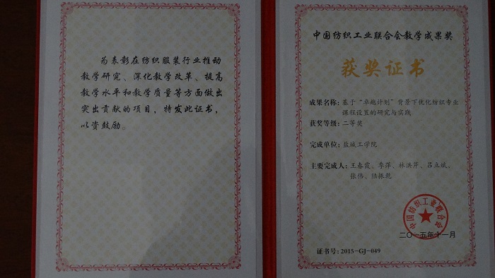 11月24日,“纺织之光2015年度中国纺织工业联合会科技教育奖励大会”在人民大会堂举行。我校纺织服装学院王春霞教授等完成的《基于“卓越计划”背景下优化纺织专业课程设置的研究与实践》获得中国纺织工业联合会教学成果二等奖,李慧、林洪芹两位老师主持的两项成果分别获得三等奖。这是该院继2013年度获得中国纺织工业联合会一项三等奖成果的基础上,在该奖项级别和数量取得了较大突破, “纺织之光”2015年度中国纺织工业联合会纺织教育教学成果奖励共授奖164项,其中一等奖18项,二等奖39项,三等奖107项。该奖项两年评一次,全国共有纺织服装专业的185所本科院校参加了申报。近几年来,纺织服装学院教学工作紧紧依托纺织服装行业,围绕人才培养质量做文章,在人才培养模式探索与实践、课程体系建设、教学方法与模式改革、学生能力培养、实践性教学等方面,积极探索和实践,取得了一定的成绩。