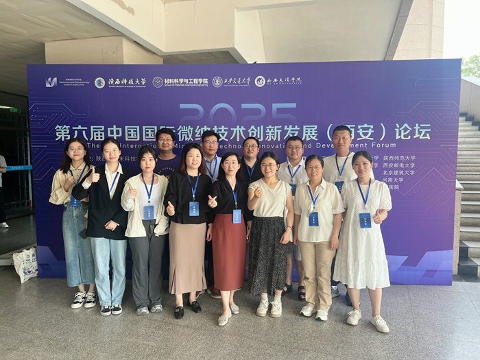 2025 年 6 月 20 日至 22 日,第六届中国国际微纳技术创新发展(西安)论坛在陕西科技大学隆重举行。此次论坛聚焦微纳技术前沿领域,为国内外专家学者、企业代表等搭建了学术交流、技术合作的优质平台。盐城工学院作为微纳米轻纺新材料分会场承办单位,由纺织服装学院陆振乾副院长带队,派出了一支包括 11 名教师和 4 名研究生的代表团参会,积极参与学术交流与研讨。