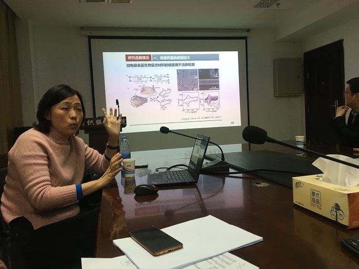 同日下午15:00,在行政楼辅楼纺服学院302会议室,戴志晖教授作了题为“基于表界面构效调控的高灵敏分析方法研究”的学术报告。纺服学院、化学化工学院、材料学院等部门相关教师和研究生参会。会议由纺服学院院长王春霞教授主持。戴教授分别从高效选择性富集、超灵敏信号输出两个方面设计高灵敏传感体系,指出功能表界面的调控是提高分析灵敏度的有效方法,并分别从生物分子对材料的直接/间接调控、多元体系材料的本征调控、传感界面的组装及信号放大三个方面深入浅出地讲述了其课题组近几年在高灵敏分析方法方面的研究工作进展,会后戴教授亲切地与老师们进行了互动交流。一个小时的报告很快结束了,大家都还意犹未尽。特别是在报告中,戴教授提及课题组老师因在光电材料合成和性质测量中敏锐地捕捉到意外的实验发现而就此撰写了国家基金面上项目申报书,并成功命中,以此勉励大家要在科研过程中善于发现、认真思考,也许一些意外的现象会带来别样的惊喜和收获,给有关科学问题提出“独辟蹊径”的解决方案。