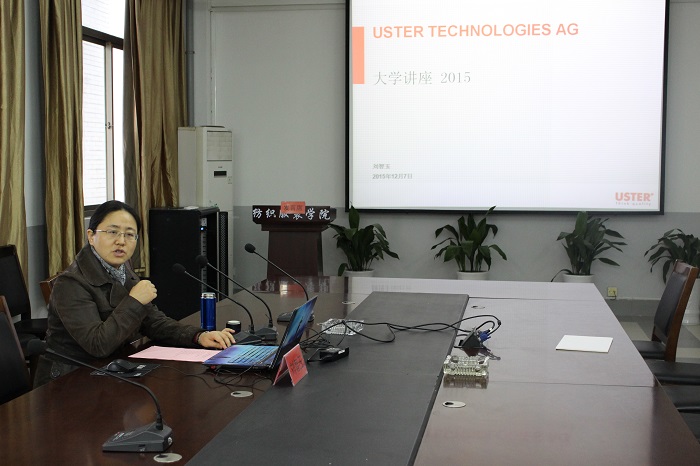 刘经理在报告中介绍了乌斯特技术有限公司的发展状况和在纺织行业中的地位,把国内外纺织行业的发展现状、国内外纺织行业标准的差异和纺织企业生产过程中一些关键性技术和设备为同学们作了讲解,并和部分同学进行了交流。