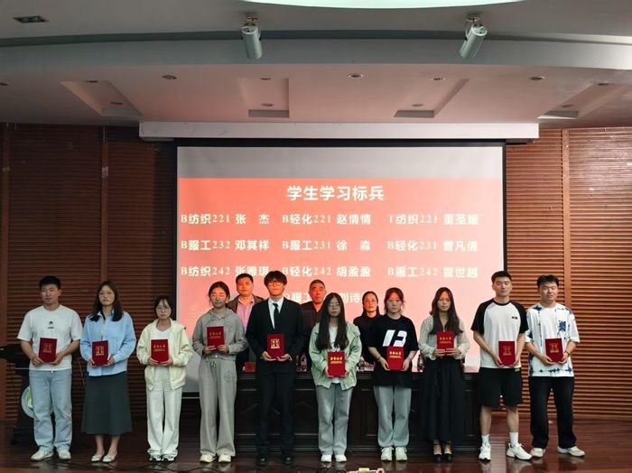 学生代表2024年省三好学生、考研先进个人B纺织212班吕茂朴同学,第18届挑战杯红色专项国家三等奖获得者、考取苏州大学研究生B轻化211班陈骄阳同学,就业先进个人D服工211班周李英同学,校优秀学生干部、三好学生B服232班邓其祥同学,依次上台发言。他们分别从学习、就业等多个方面分享个人经验和心得,鼓励同学们要树立理想目标,并不断为之奋斗,点亮青春中属于自己的光彩。