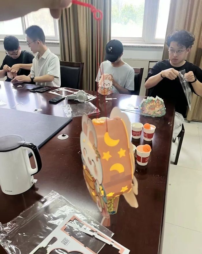 活动中,同学们兴致勃勃地围坐桌旁,认真聆听老师讲解兔子灯的制作步骤,纷纷动手尝试,伴随着欢声笑语,一只只活灵活现、透着灵气的兔子灯逐渐在大家手中完成。此外,“漆签制作”、“月球漫步”、“桂香吹落月”等传统手工游戏与趣味竞技轮番上演。活动间,互帮互助的暖意随处可见,大家都沉浸在这份其乐融融的氛围里,将集体的温暖酿成了中秋最甜的滋味。