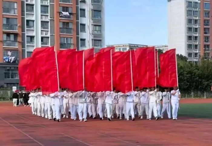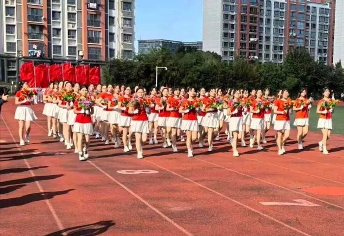 激昂的旋律在耳畔回响,鲜花彩旗等方阵依次入场,伴随着铿锵有力的解说,纺服学子身着百花齐放般各具特色的国风“战袍”,步履从容,仪态万方,在行进间绘制成一幅行云流水般和谐的时尚画卷。