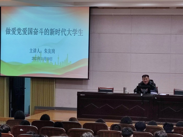 为培养学生新时代爱国主义情怀,增强学生的使命感和责任感,引导学生厚植红色基因,激发爱国情感。11月10日晚上七点半,在机械馆报告厅,我院邀请校关工委副主任朱友岗教授为我院学生作报告,报告主题为《做爱党爱国奋斗的新时代大学生》,全体2021级新生参加。