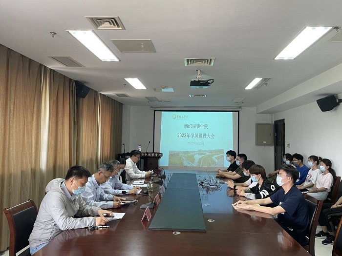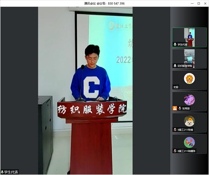 5月25日下午2:00,纺织服装学院在学院三楼会议室通过线上“腾讯会议”形式召开2022年学风建设大会。学院党总支书记宋孝浜、院长王春霞、副院长周天池、马志鹏,全体专兼职辅导员、受表彰学生、各年级500余名学生参加会议。大会由学院党总支副书记杨军主持。