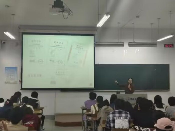 柏昕老师首先简述了纺织服装学院的发展史以及我院人才培养目标,对学生的能力提出要求,并强调同学应该具备自我学习的能力。接着,柏昕老师列举了往期毕业生的去向,以案例为载体,仔细为同学分析了职业面向和考研方向,并向同学展示了本专业学生的国家级和省级赛事的获奖证书。她还将服装设计和服装设计与工程这两个专业进行了区分比较,并从师资团队和实验室实习基地等方面简述了本院的一系列教育资源,以重点阐述该专业的课程与特色。