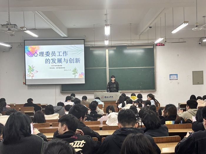 为全面普及心理健康知识,进一步增强我院学生心理健康防护意识和心理调节能力,养成积极健康心态。3月21日晚上7点,我院于博学楼C105组织人员观看詹启生教授以“心理委员工作的发展与创新”为主题的直播讲座,学院大一至大四年级各班班长、团支书、心理委员、宿舍寝室长以及心理联络部全体成员参加,学院心理辅导员倪梅娟老师到场主持并作了动员讲话。