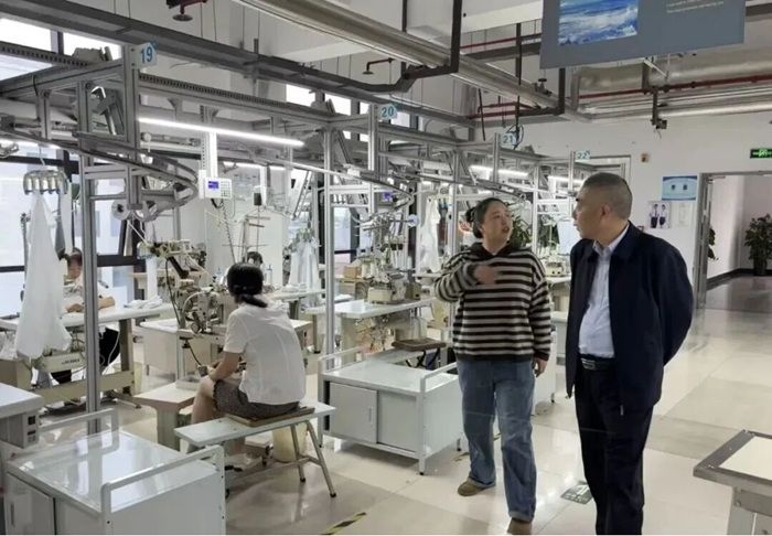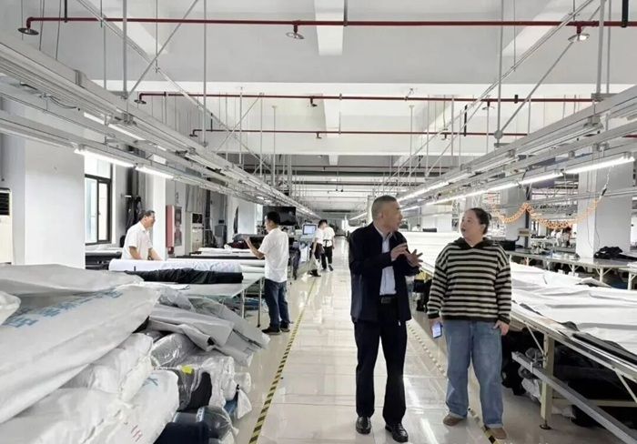 江苏虎豹集团作为扬州服装产业的龙头企业,主导产品涵盖“虎豹”牌衬衫、西服、休闲服及职业装等,年销售额达25亿元人民币,在行业内拥有深厚的技术积累与广泛的市场影响力。在企业相关负责人的陪同下,宋孝浜走入生产车间,实地考察企业生产运营情况。车间内分工明确、紧张有序的作业场景让人印象深刻——从制版画图的精准设计,到布料裁剪的细致操作,再到缝制熨烫的工艺把控与成品打包的规范流程,各环节高效衔接,展现出成熟的生产体系。