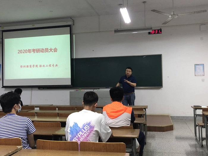 为做好下一学年考研工作,动员学生积极备考,指导考研学生做好复习规划,5月16日-17日,学院在博学楼B楼多媒体教室分专业举办考研经验交流会,学院党总支副书记杨军、副院长周天池、纺织工程系主任陆振乾、服装设计与工程系陈嘉毅、吴佳佳等领导老师、2020年考取硕士研究生学生代表和2017级考研学生参加。