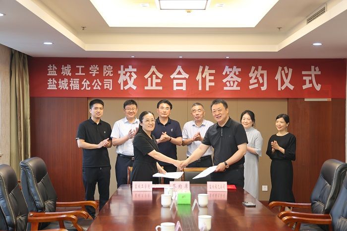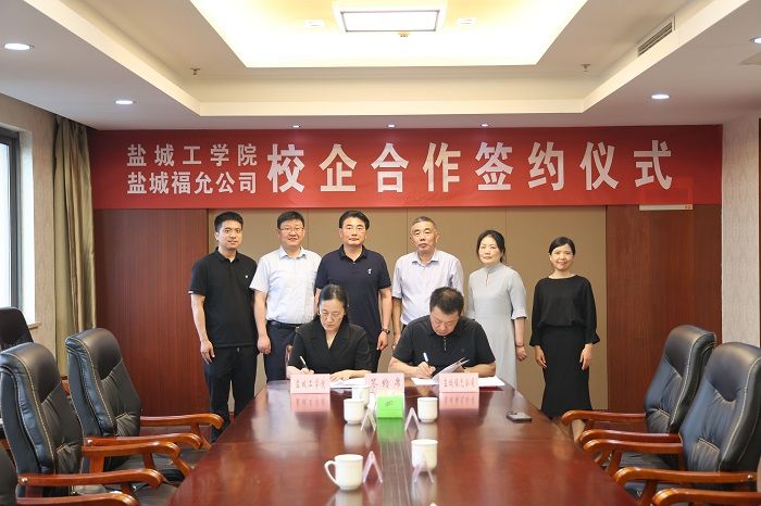 学院院长王春霞与江苏福缘服装科技有限公司、盐城福允体育用品有限公司总经理彭大志作为双方代表共同签订《就业实习基地共建协议书》。