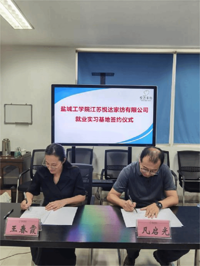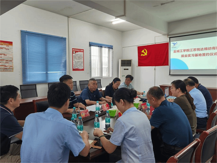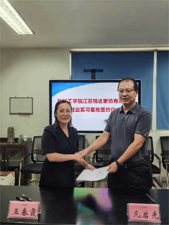 新学期,新征程。为全力推进2024届毕业生高质量就业工作,深化产教融合,校企合作。9月15日下午,纺织服装学院党总支书记宋孝浜、院长王春霞、副院长马志鹏一行前往江苏悦达棉纺有限公司,江苏悦达家纺有限公司开展“访企拓岗促就业”专项活动暨就业实习基地授牌签约仪式。江苏悦达纺织集团有限公司副总、江苏悦达棉纺有限公司常务副总马春琴,江苏悦达家纺有限公司总经理凡启光等领导参加仪式。学院纺织工程系主任陆振乾、院团委副书记孙静、专业教师崔红、郭岭岭、部分大四毕业生等参加活动。