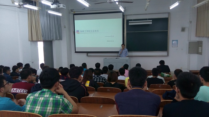 5月21日上午9:00,应学院邀请,我院06届轻化工程专业校友、张家港金陵纺织有限公司分厂厂长张虎为学院轻化工程专业新生做报告,报告会在北校区知达楼3J2C207教室举行,学生科科长张庆领、轻化工程专业系主任周天池、实验中心周青青老师及2015级轻化工程专业全体学生近70人参加。