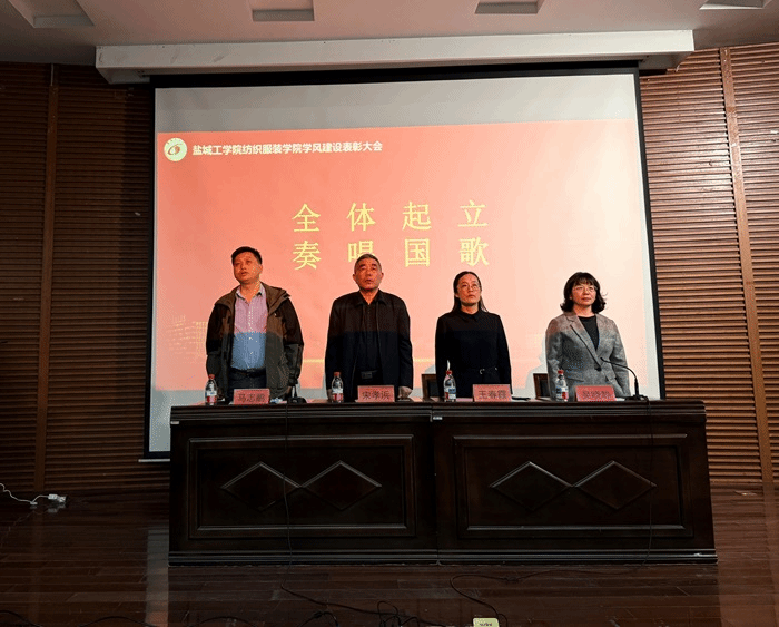 为进一步激发学风建设活力,营造浓厚的学习氛围和良好的育人环境,总结成绩、宣传典型、表彰先进,全面提升人才培养质量,4月17日晚上七点,纺织服装学院在润美楼报告厅召开2025年学风建设表彰大会。学院党总支书记宋孝浜、院长王春霞、副院长马志鹏,全体专职辅导员、受表彰学生、大一、大二约300名学生共同参与。大会由学院党总支副书记吴晓静主持。在嘹亮的国歌声中,大会正式拉开帷幕。