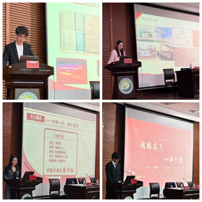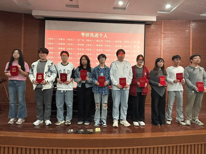 学生代表2024年省三好学生、考研先进个人B纺织212班吕茂朴同学,第18届挑战杯红色专项国家三等奖获得者、考取苏州大学研究生B轻化211班陈骄阳同学,就业先进个人D服工211班周李英同学,校优秀学生干部、三好学生B服232班邓其祥同学,依次上台发言。他们分别从学习、就业等多个方面分享个人经验和心得,鼓励同学们要树立理想目标,并不断为之奋斗,点亮青春中属于自己的光彩。