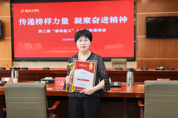 6月11日上午,学校在希望大道校区行政楼9楼视频会议室召开第二届“感动盐工”人物表彰座谈会。我院高级实验师林洪芹凭借三十余年坚守实验室的匠心精神和育人成就,获此殊荣。她在平凡岗位上辛勤耕耘,无私奉献,充分展现了"专一行、爱一行、精一行"的职业追求。三十多年来,她在实验教学与管理的工作中,以扎实的专业能力和执着的敬业精神,织就了一幅幅“匠心织梦”的绚丽画卷。
