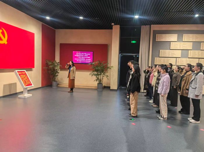 在纪念馆宣誓厅,全体党员面向党旗重温入党誓词。铿锵有力的誓言回荡在展厅内,进一步强化了党员身份意识和责任意识,决心要将铁军精神转化为攻坚克难的行动力,在本职岗位上当先锋、做表率。