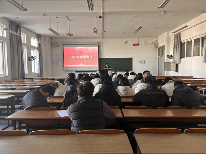 校园内,各班以团支部为单位以主题团课为载体开展宪法学习活动,成为宣传周亮点。团课围绕核心设计四大环节:主题学习环节,团员研学总书记关于宪法的重要论述,结合宪法修订历程和法治成就阐释“宪法至上”理念。此外,学院动员师生参与线上普法,组织收看“宪法的精神 法治的力量——2025年度法治人物”等专题节目,参与宪法知识竞答活动,以赛促学提升师生法治素养。