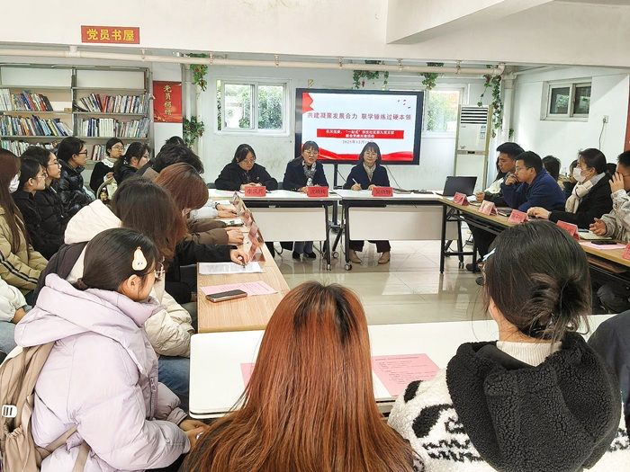 为深入学习贯彻党的二十届四中全会精神,进一步深化党建引领,凝聚师生发展合力,12月10日下午,机关党委联合“一站式”学生社区第九党支部,于社区活动室开展以“共建凝聚发展合力,联学锤炼过硬本领”为主题的党建共建活动。学校机关党委书记沈晓梅、优培学院党总支副书记李凤芹出席活动, 来自纺服学院、优培学院、数理学院、外国语学院的40余名师生党员共同参与。活动由纺服学院党总支副书记、“一站式”学生社区第九党支部书记吴晓静主持。
