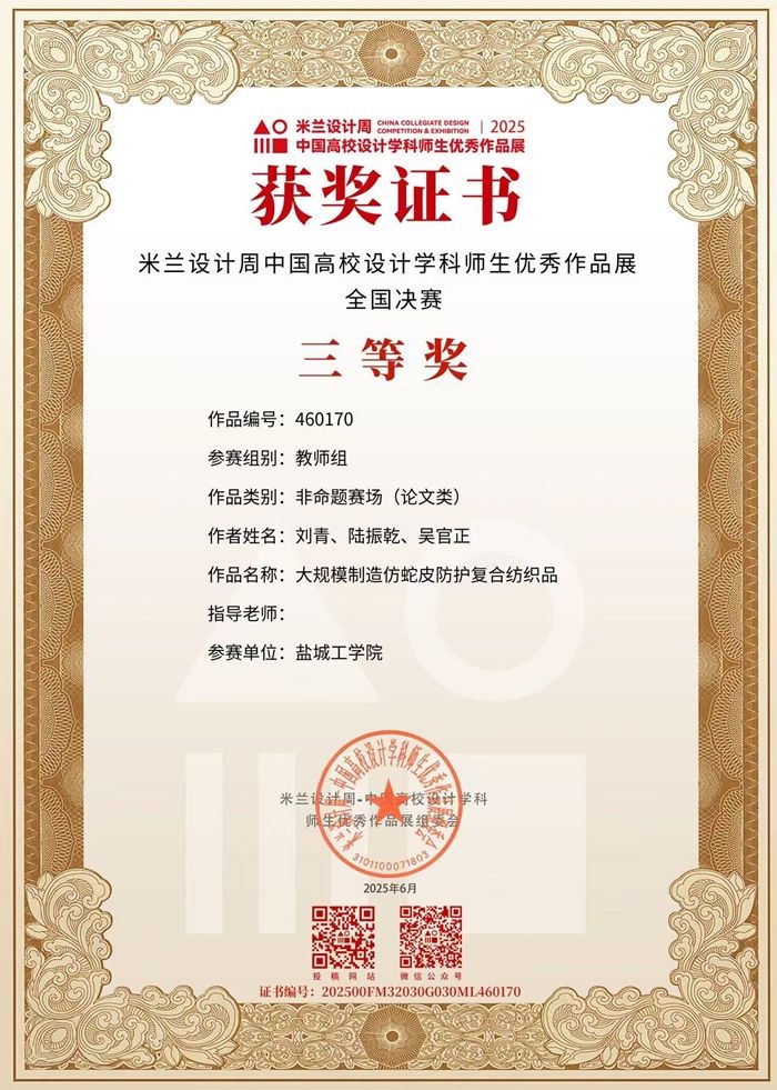 近日,教育部中国高等教育学会学科竞赛榜单赛事——2025米兰设计周中国高校设计学科师生优秀作品展圆满收官。我院师生在赛事中表现突出,共收获国赛三等奖 2 项(含教师组 1 项)、省赛一等奖 1 项、省赛二等奖 4 项、省赛三等奖 10 项。其中:葛元宇老师指导学生的作品摘得学生组国赛三等奖;史超、林洪芹、刘世文等多位老师的指导作品获省赛二等奖;柏昕、张雯、段宁宁、李冰冰、程冰莹、黄新民老师指导的作品获省赛三等奖。我院青年教师刘青博士获教师组国赛三等奖1项、省赛一等奖1项、省赛二等奖1项。师生双线获奖的成绩,展现了我院学科“教学相长、教研共进”的良好生态。