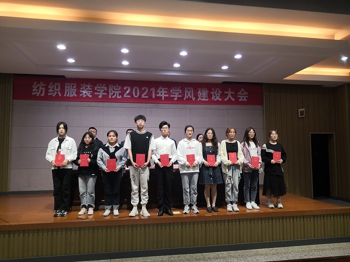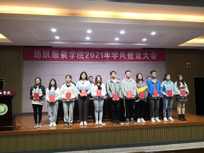 大会在庄严的国歌声中拉开序幕,大会上,毕红军副院长宣读了《纺织服装学院关于表彰学生标兵的决定》,周天池副院长宣读了《2021届考取硕士研究生学生名单》;主席台就坐领导为受表彰的学生标兵颁发了荣誉证书;B轻化181班吴雨旸和D服工201班陈笑两位同学代表受表彰学生做了发言;副院长王春霞作总结讲话,她总结了学院在学风建设上取得成绩,分析了学院当前学风建设的现状,指出了部分学生在学业上存在的问题,希望同学们要勤奋学习、善于学习、管理好自己,以良好的精神风貌、严谨的学习态度,锐意进取,努力实现人生目标。