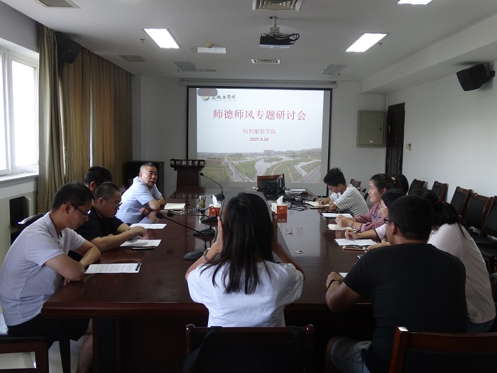 为进一步推进师德师风建设工作,提高广大教职工思想政治素质和职业道德修养,9月24日下午纺织服装学院在学院会议室召开师德师风研讨会。党总支书记宋孝浜、近三年新入职的10名教师参加了研讨会。会上,大家结合《新时代高校教师职业行为十项准则》,围绕如何弘扬师德师风、怎样成为一个“四有”好老师等内容,展开了讨论。