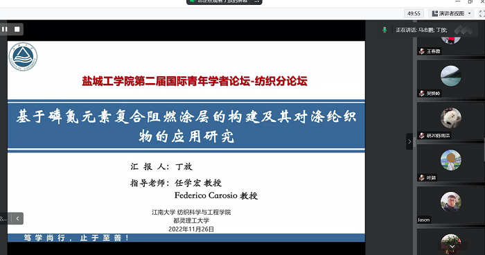 11月26日下午,我院成功举办第二届国际青年学者论坛。本次论坛邀请到江南大学和意大利都灵理工大学联合培养的丁放博士与大家分享研究成果,院长王春霞和骨干教师及研究生共30多人以在线形式参加了活动,论坛由副院长马志鹏主持。
