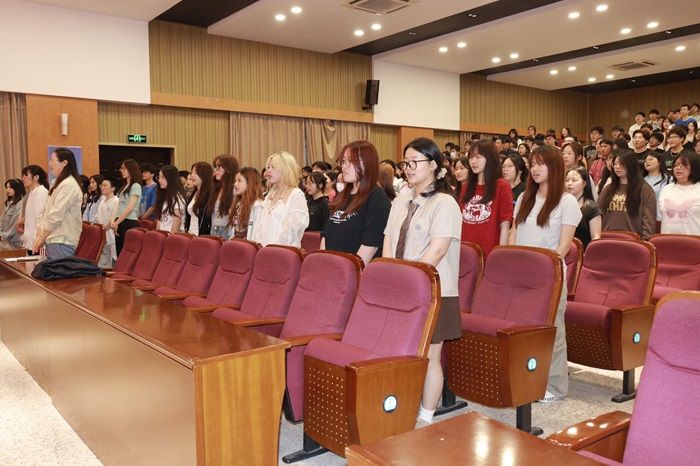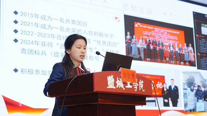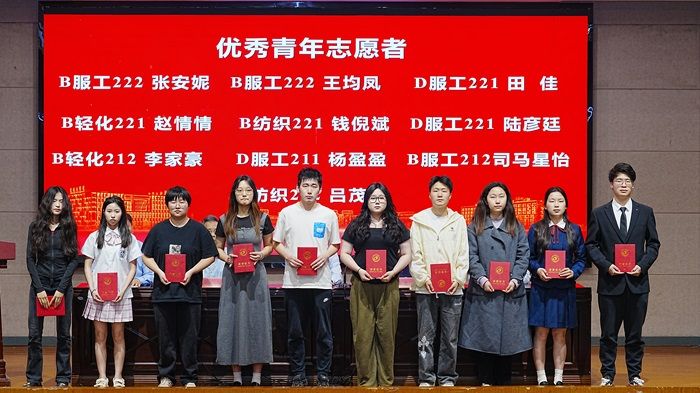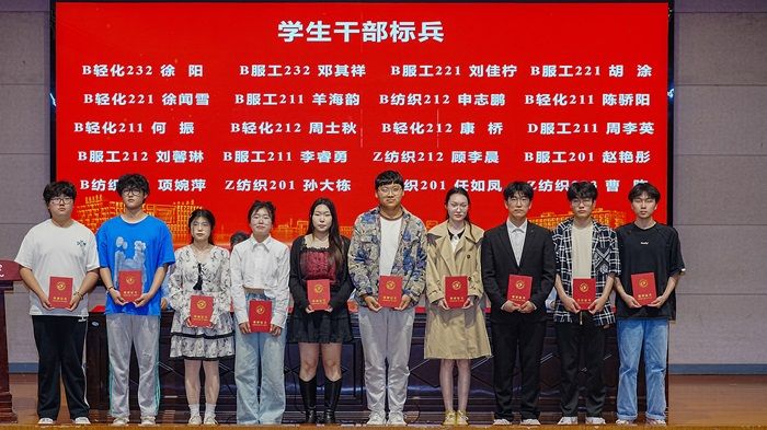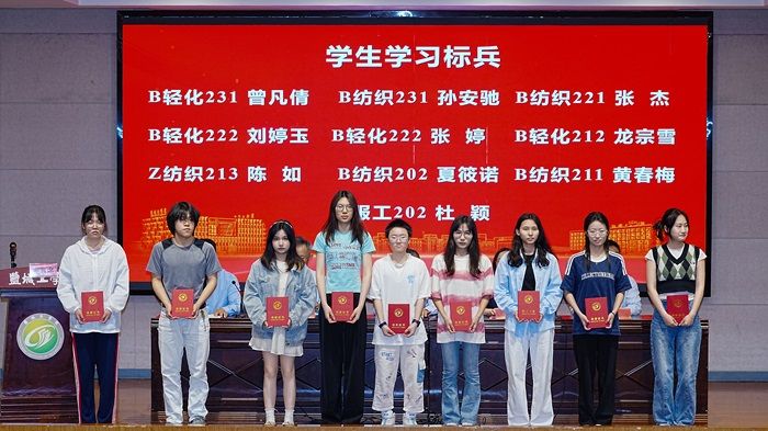学生代表2024年省三好学生B纺织212班吕茂朴同学、2024年省优秀学生干部B轻化211班何振同学、考取东华大学硕士研究生B服工202班史恬运同学以及2023年江苏高校青年志愿服务项目金奖获得者D服工211班杨盈盈同学依次上台发言。四位同学分别从生涯规划、学习、工作、考研升学、学科竞赛、社会实践等方面进行经验分享。他们以切身体会,鼓励同学们要珍惜时间、把握机会、勤于学习,不断夯实自身专业知识和专业技能;躬身实践,努力锤炼实干本领,奋力谱写纺服盐粒子的靓丽华章;踔厉奋发、笃行不怠,让青春在热烈奋斗中绽放绚丽之花。