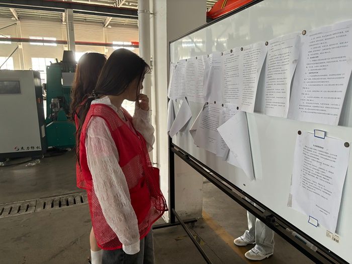 在盐城日臻新材料科技有限公司,实践小分队深入了解各类产品的制作流程、生产工艺以及质量控制流程。通过观察和亲自参与部分操作,学生们对企业的运作方式和管理模式有所明晰。