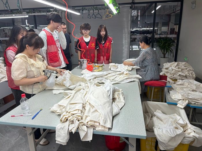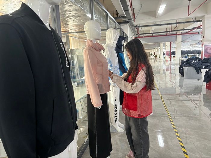 成品展示区则展示了该企业最新生产的服装产品,款式多样、色彩鲜艳,大家纷纷驻足欣赏,对服装厂的产品质量表示赞叹。参观过程中,服装厂负责人还详细讲解了生产的工艺流程、质检等方面的知识,让大家对服装行业有了更加深刻的了解。