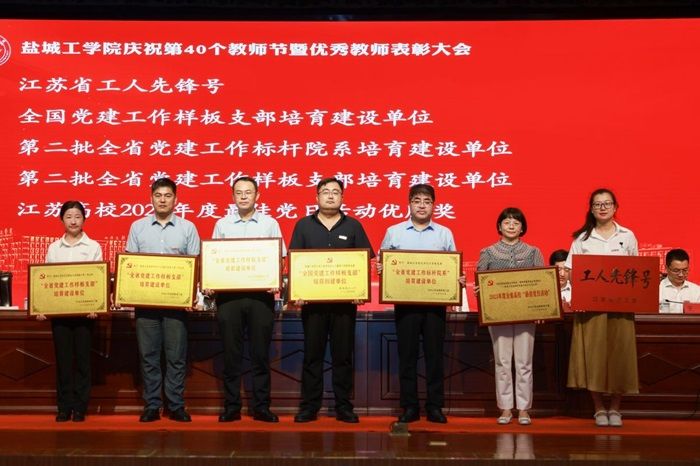 9月10日下午,盐城工学院隆重举行了第40个教师节暨优秀教师表彰大会。在本次大会上,我院斩获多项殊荣,获奖老师或代表们登台领奖。