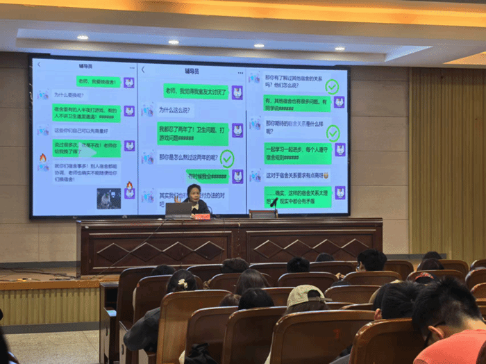 韦春华老师以“什么是心理健康”引入主题,针对大一新生在入学初期常面临的环境变化、学习模式转型、社交圈重构以及心理调适等诸多挑战,从大学集体生活方式、社会关系、自我变化等三个方面,根据实际案例层层剖析,详细阐述了控制个人情绪、高效自我调节以及释放心理压力的一系列科学策略与方法,为新生们提供有力的心理支持与指导。