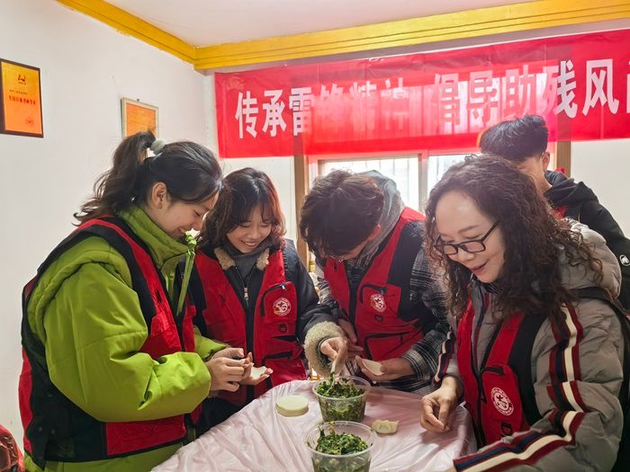 活动中的包饺子环节将现场气氛推向了高潮。志愿者们带来了新鲜的饺子皮和馅料,邀请残疾家庭成员一起动手包饺子。不一会儿,一个个形态各异的饺子摆满了盘子,有圆润饱满的,有小巧精致的,每一个饺子都饱含着大家的心意 。当热气腾腾的饺子出锅,大家围坐在一起,共同品尝这份劳动成果。饺子的香气弥漫在整个房间,大家一边吃着饺子,一边分享着生活中的点滴趣事,欢声笑语回荡在屋内。这一刻,彼此之间的距离被无限拉近,温暖与幸福在每个人的心中流淌。