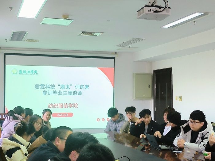 3月18日下午,纺织服装学院院长王春霞、纺织专业系主任林玲、轻化专业系主任葛元宇、毕业班辅导员王超、任晓慧及专业教师王丽丽、冒海燕、胡小赛、史超与20名参训学生齐聚会议室,共同参加君霖科技“魔鬼”训练营参训毕业生座谈会。会上,院长王春霞对学生的全程参与和成长给予了高度评价,并为他们的职业发展送上殷切寄语。参训学生均踊跃发言,积极分享训练营中的收获与感悟,其中,Z纺织212班的顾李晨同学提到:“企业提供的先进平台让我们接触到前沿技术,这对未来职业规划意义重大。”B轻化211班的刘根森同学表示,训练营的快节奏让他深刻体会到行业对效率和创新的高要求。赵天祥同学由于在配色项目表现优异,获得了企业领导的一致认可。衡永运、孙益鑫同学提到,工作中要积极主动、思维活跃,将学校里的理论知识与企业先进经验进行有机结合。学院此次座谈会为本次为期12天的训练营画上了圆满句号。