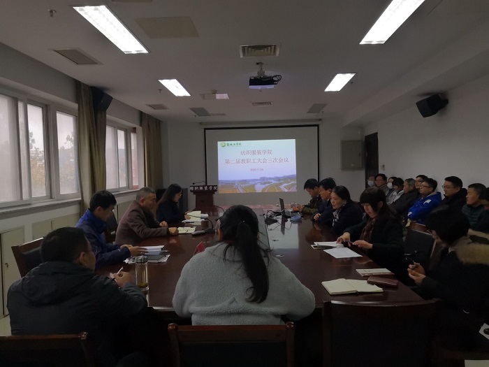 11月25日下午,纺织服装学院在学院会议室召开第二届教职工大会三次会议,全体教职工参加,党总支书记宋孝浜主持会议。