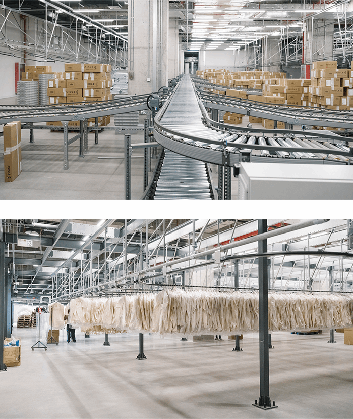 90后,年轻有为的副厂长金昊带领师生们深入生产一线,见证了企业集制造系统合力,历时8年达到的当代化制造业态,15000平方米立体设计的大平层生产区域应用瑞典ETON吊挂,三禾空中物流,飞榴MFS系统,让成衣按节拍在空中舞动,独立配置的智能终端助力每一位员工获取实时信息,愉悦并优质高效的开展工作。