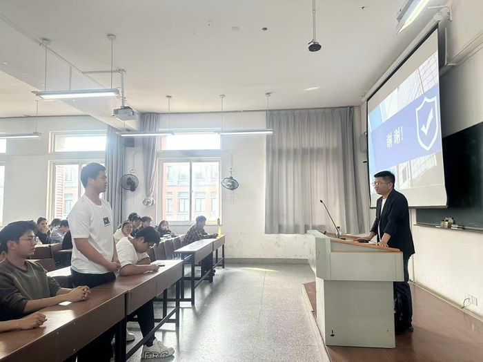 在互动环节,孙仁斌博士与学生们进行了深入交流。他耐心解答了学生们在专业学习中遇到的疑问,并就学业规划、职业发展以及人生目标等话题与大家展开热烈讨论。孙博士鼓励学生们树立远大理想,扎实掌握专业知识,积极拥抱行业新技术,为未来的职业生涯打下坚实基础。他的真诚建议和亲切指导赢得了在场学生的热烈掌声。