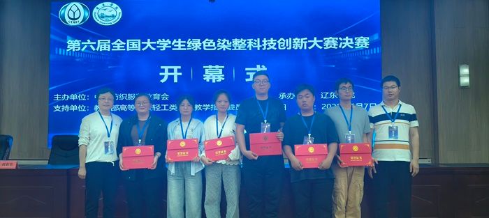 近日,由中国纺织服装教育学会主办、辽东学院承办、教育部高等学校轻工类专业教学指导委员会支持的第六届全国大学生绿色染整科技创新大赛决赛在辽东学院举行。纺织服装学院马文杰和吕景春两位老师带队参与,决赛模式为“视频展示+现场答辩”,经过激烈角逐,我院师生报名24个项目,共获得6项二等奖和7项三等奖的优异成绩。