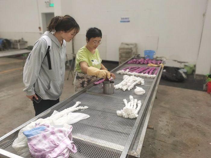6 月 12 日,同学们走进江苏华艺集团,开启了一场艺术染整生产工艺的学习之旅。在厂区内,大家近距离观察与学习,深入了解扎染工艺的各个环节,从原材料的处理到最终产品的呈现,让理论知识与实践操作紧密结合。随后,同学们参观了南通扎染博物馆的绞缬花开展览。在博物馆内,一件件精美的扎染作品陈列眼前,色彩绚丽、纹理独特,展现了传统非遗文化的独特魅力。同学们亲自体验扎染技艺,感受非遗文化的深厚底蕴。
