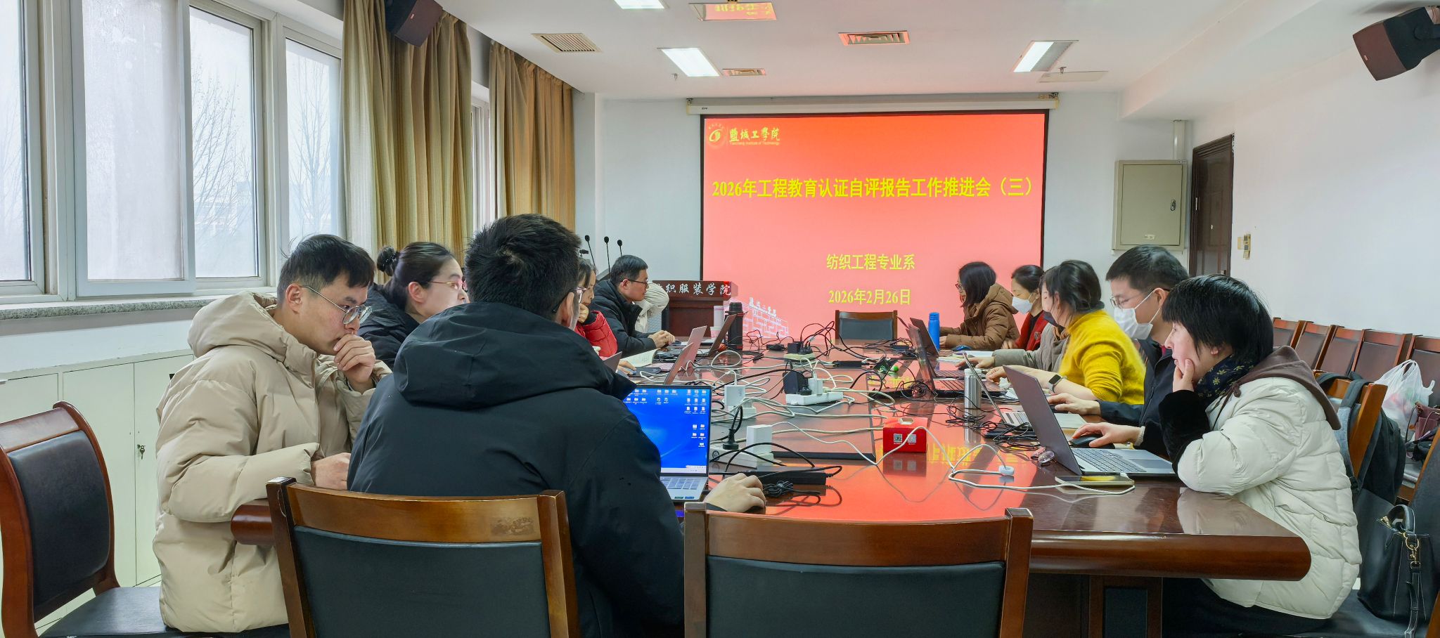 寒假期间,为扎实推进工程教育专业认证工作,全面提升人才培养质量与专业建设水平,盐城工学院纺织服装学院纺织工程专业全体教师放弃休息,在院长带领下集中开展工程教育认证自评报告撰写工作。大家以高度的责任感与使命感,分工协作、集中攻坚,确保认证筹备工作有序高效推进。