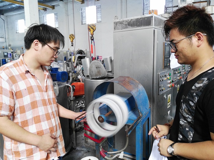 进驻企业进行生产实习是十分重要的实践性教学环节,是培养学生实际动手能力、分析问题和解决问题能力的重要手段,同时也是理论与实践相结合的基本训练。2016年6月22日-6月27日,经过纺服学院领导与海安联发集团的沟通联系,轻化工程专业13级本科生在周天池、祁珍明、郑成辉三位老师的带领下,进驻联发集团的生产现场。同学们共分成四个小组,轮流在染色车间、后整理车间、印花车间和小样室进行了为期6天的生产实习。在实习期间,同学们首先接受了企业的相关培训,深入车间后基本上能做到与工人师傅结对学习,一人一机,充分了解和掌握了染整设备的型号和成品检测方法。