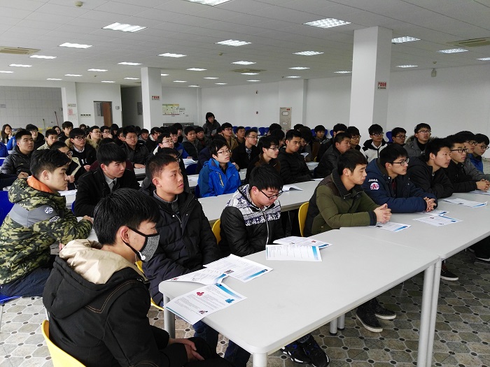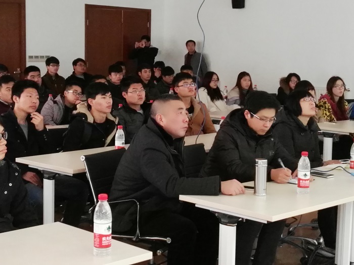 老师和同学们认真听企业负责人做企业介绍