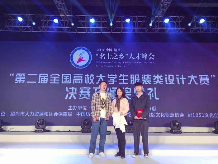 10月28日,由中国纺织教育学会和绍兴市人力资源和社会保障局举办的第二届全国高校大学生服装类设计比赛在浙江绍兴隆重举行,纺服学院领导,副院长王春霞、毕红军带领专业教师陆平等多位同学前往参赛。由陆平老师指导的周凯同学获得优秀奖,刘永、周梦佳、邱婷婷等同学入围,该大赛自征稿启动以来,共收到200多份来自全国各大高校的参赛作品,经过专家初审、初评、终评,从大赛入围的47件作品中共评出一等奖1名、二等奖2名、、三等奖3名、优秀奖20名、单项奖3名。
