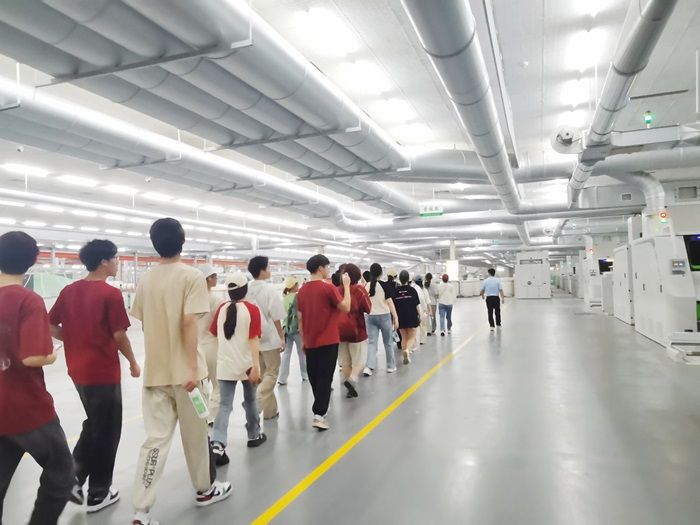 2024年6月17日至22日,我院纺织工程23级大一学生开展了为期一周的认识实习,认识实习是学生在进行专业课学习前进行的一个重要的实践课程,通过实习让学生了解纺织品生产的实际工作流程、行业规范和最新发展趋势,亲身体验生产环境,探索自己的专业学习兴趣和目标。因此,本次实习选定了悦达棉纺有限公司的智能车间和悦达家纺有限公司为实习单位。特别是悦达棉纺有限公司的智能车间代表了智能制造和工业4.0的发展方向,工厂全流程采用智能化纺纱装备,实现运营智能化、装备智联化、制造数字化,提升了生产流程的自动化和智能化水平。智能车间内部几乎无人走动,由机器人完成大部分工作,减少了人工操作,提高了生产效率。悦达棉纺的智能车间还注重绿色化生产,通过智能化技术提高能源利用率,减少能源消耗和环境污染。